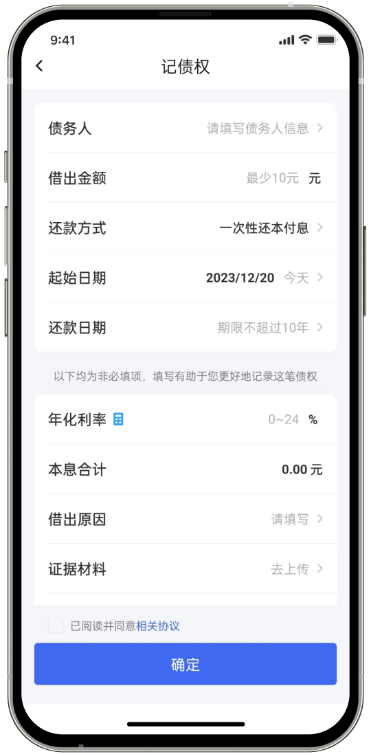 用户只需在借贷宝平台上创建账目,输入相关信息如债权人、债务人、借款金额、借款日期等,并上传转账记录、聊天截图等凭证。平台会自动保存并管理这些账目,到期时发送提醒短信,帮助用户轻松管理债权。